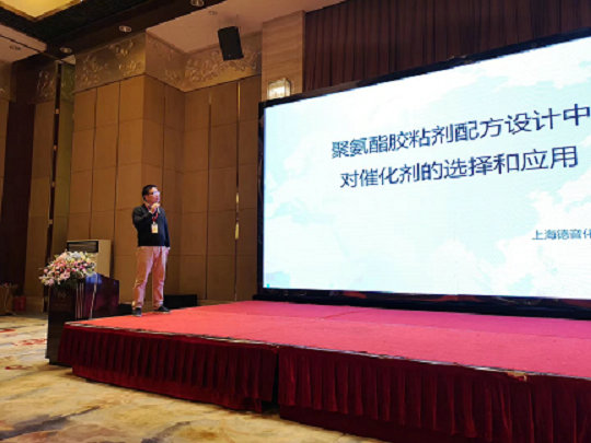 上海德音化學(xué)有限公司竇凱先生應(yīng)邀與會(huì),并做“聚氨酯膠粘劑配方設(shè)計(jì)中對(duì)催化劑的選擇及應(yīng)用”報(bào)告。